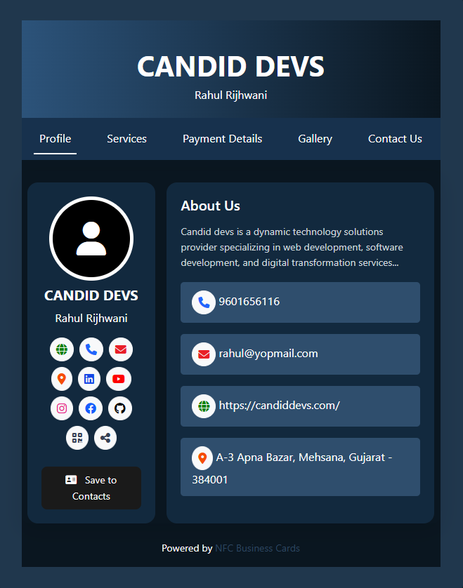 Create, customize, and share your professional digital business card with NFC technology. Make networking seamless and memorable.
